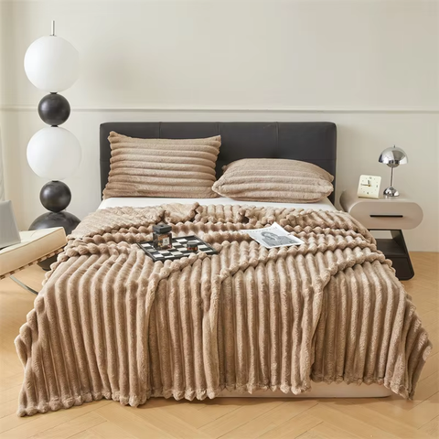 China Wholesale Cobertores de Luxo Macio Quente De Alto Peso De Pele De Coelho Flanela Bolha Cobertor Para O Inverno Home Decor
